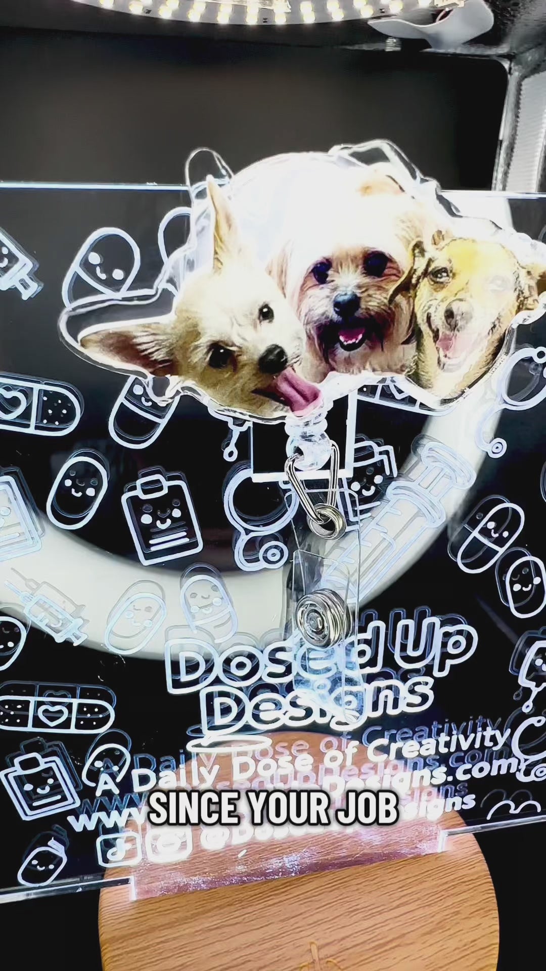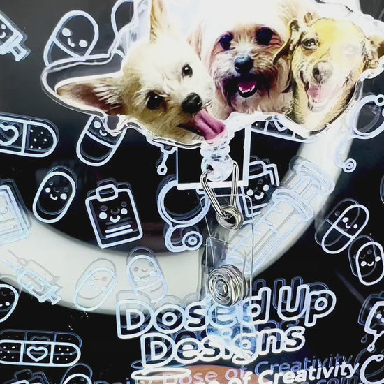 • Materials: UV resin dome, printable vinyl, acrylic, retractable badge reel